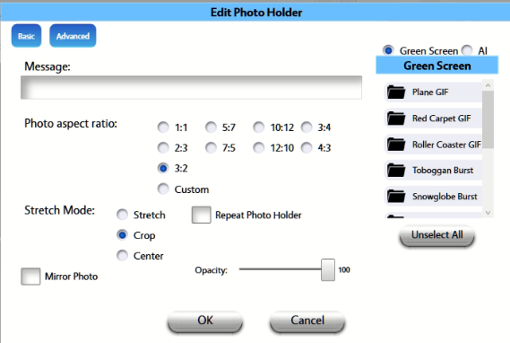 - This works as before (and you can also select a Greenscreen or AI filter that is automatically applied to the Photo Holder: