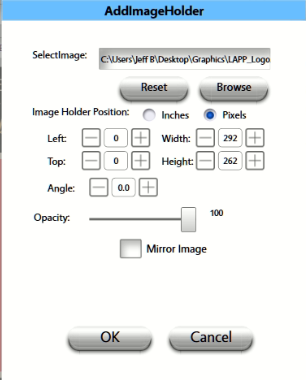 - Think of this as adding a logo that you can position and resize manually, as well as adjust the opacity. This can be jpg or png image. Use png if you want to retain transparency in the Image file.