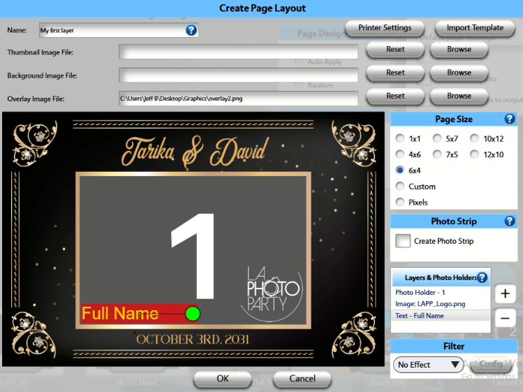 In addition to the Photo Holder, here you can see we loaded the LAPP logo as an Image Holder, and a Text Holder that will prompt guests to enter their Full Name before the photo is captured: